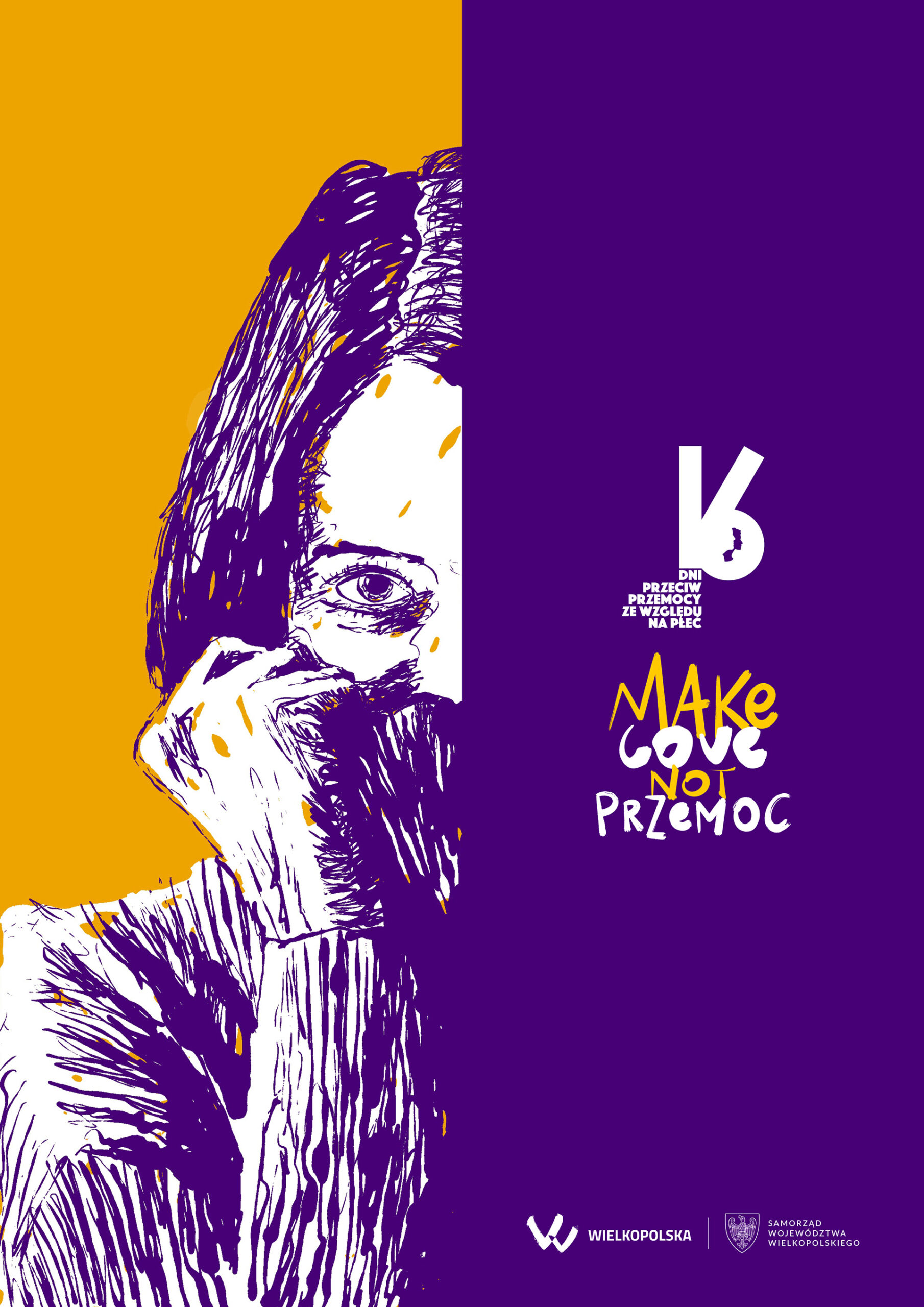 W mojej pracy graficznej łączę estetykę z przekazem społecznym i historycznym. Przykładem jest kampania „Make Love Not Przemoc”, realizowana w ramach międzynarodowej akcji 16 Dni Przeciw Przemocy ze względu na Płeć. Stworzyłem dla niej kompletną oprawę wizualną – od logo, przez plakaty, po grafiki do mediów społecznościowych – nadając kampanii wyrazisty, rozpoznawalny styl, który pojawiał się w przestrzeni publicznej i instytucjach społecznych w całej Wielkopolsce.